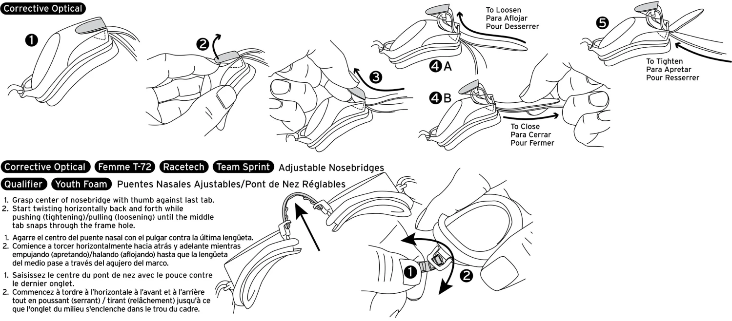 Corrective Optical Goggles are also equipped with thermal plastic rubber gaskets, a durable, split, TPR head strap and easy adjust snap-lock side clips.