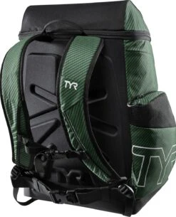 The TYR Alliance 45L Backpack-Team Carbon is designed with fabric technology to ensure a lightweight feel and durable, water resistant construction.