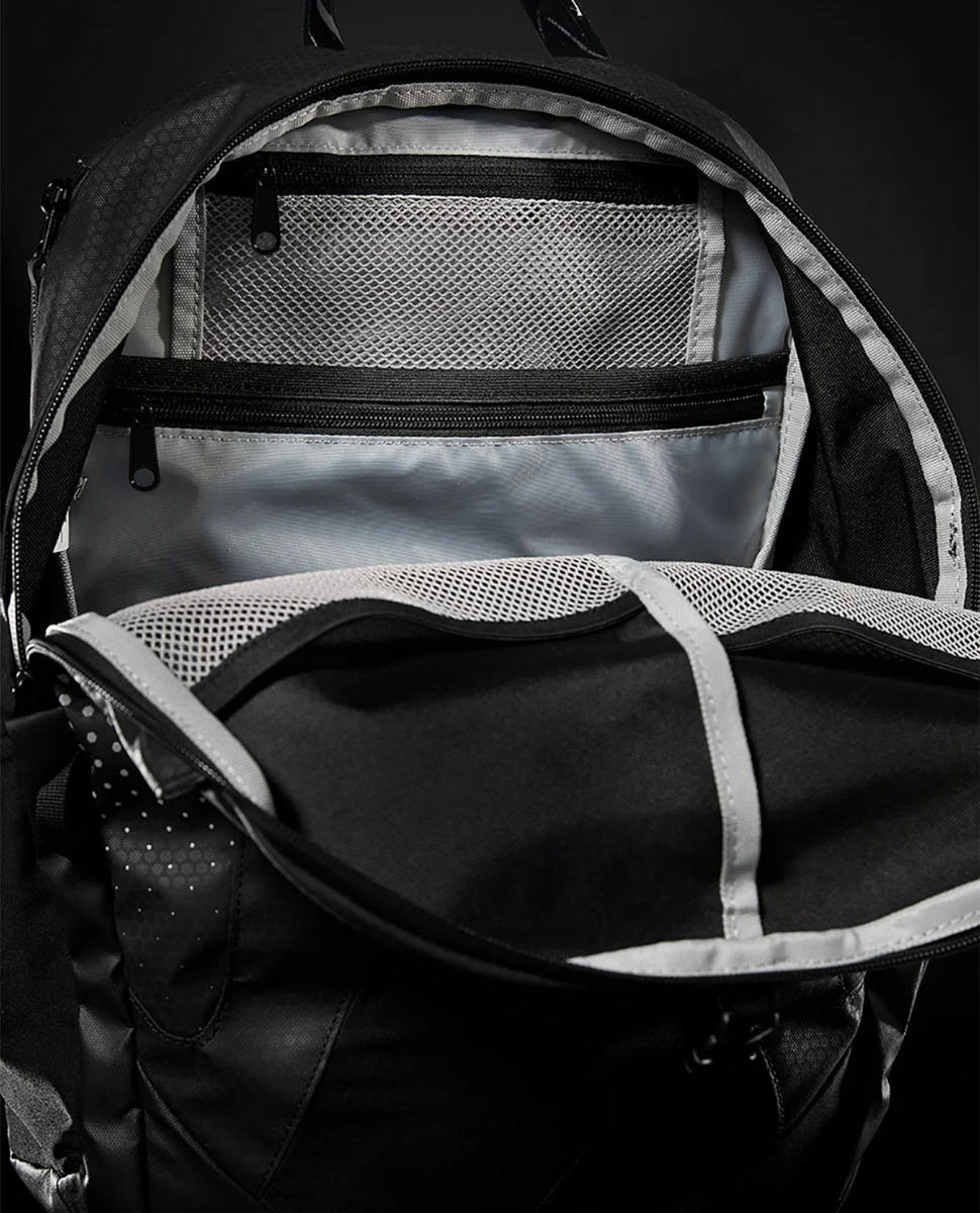 With an innovative range of never before seen features, the LTEBPK is designed to support life on the go. Beginning with a system of state-of-the-art fabric and leak proof zippers, the Elite Team Backpack maintains a water resistant construction that works to protect your personal items and apparel. In addition, the LTEBPK boasts an ergonomic design that places less weight on the small of the back to prevent lumbar strain. It’s unique stretch fabrication, exterior bucket compartment and canister pockets can also be retracted to reduce the size of the bag by up to 43%.